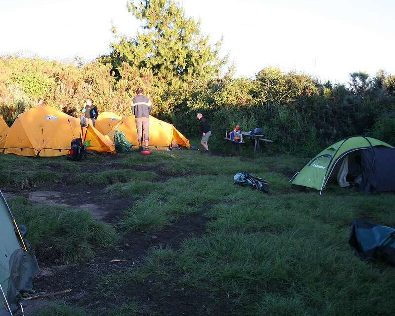 Drive to the attractive wooden village of Nale Moru (about 2 hours including a stop to get permits at Marangu). After signing in and preparing the porters, you will begin the hike on a wide path that winds through fields of maize and potatoes before entering pine forest. The track then starts to climb consistently but gently through attractive forest that shelters a variety of wildlife. The forest begins to thin out and the first camp is at the edge of the moorland zone with extensive views over the Kenyan plains.