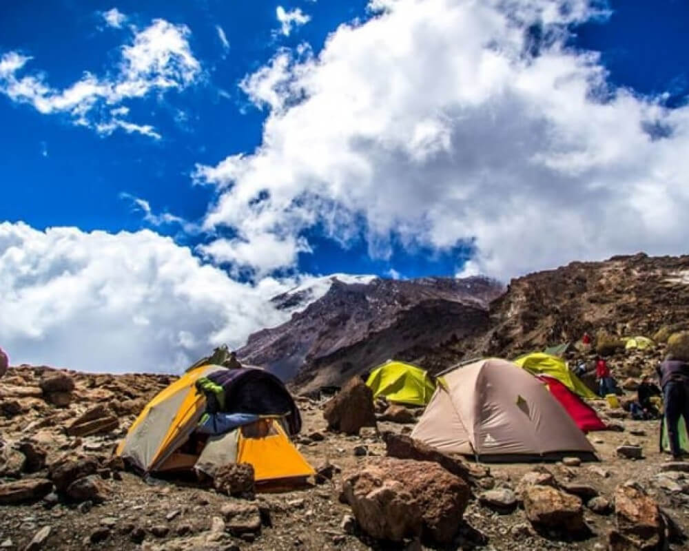 Cross the lunar desert of the ‘Saddle’ between Mawenzi and Kibo to reach Kibo campsite at the bottom of the Kibo crater wall. The remainder of the day is spent resting in preparation for the final ascent very early.