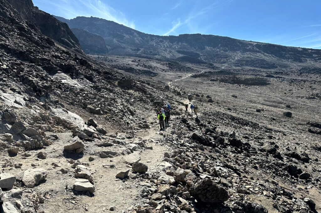 We continue up to the Barafu Camp. You have completed the South Circuit, which offers views of the summit from many different angles. Here we make camp, rest, enjoy dinner, and prepare for the summit day.