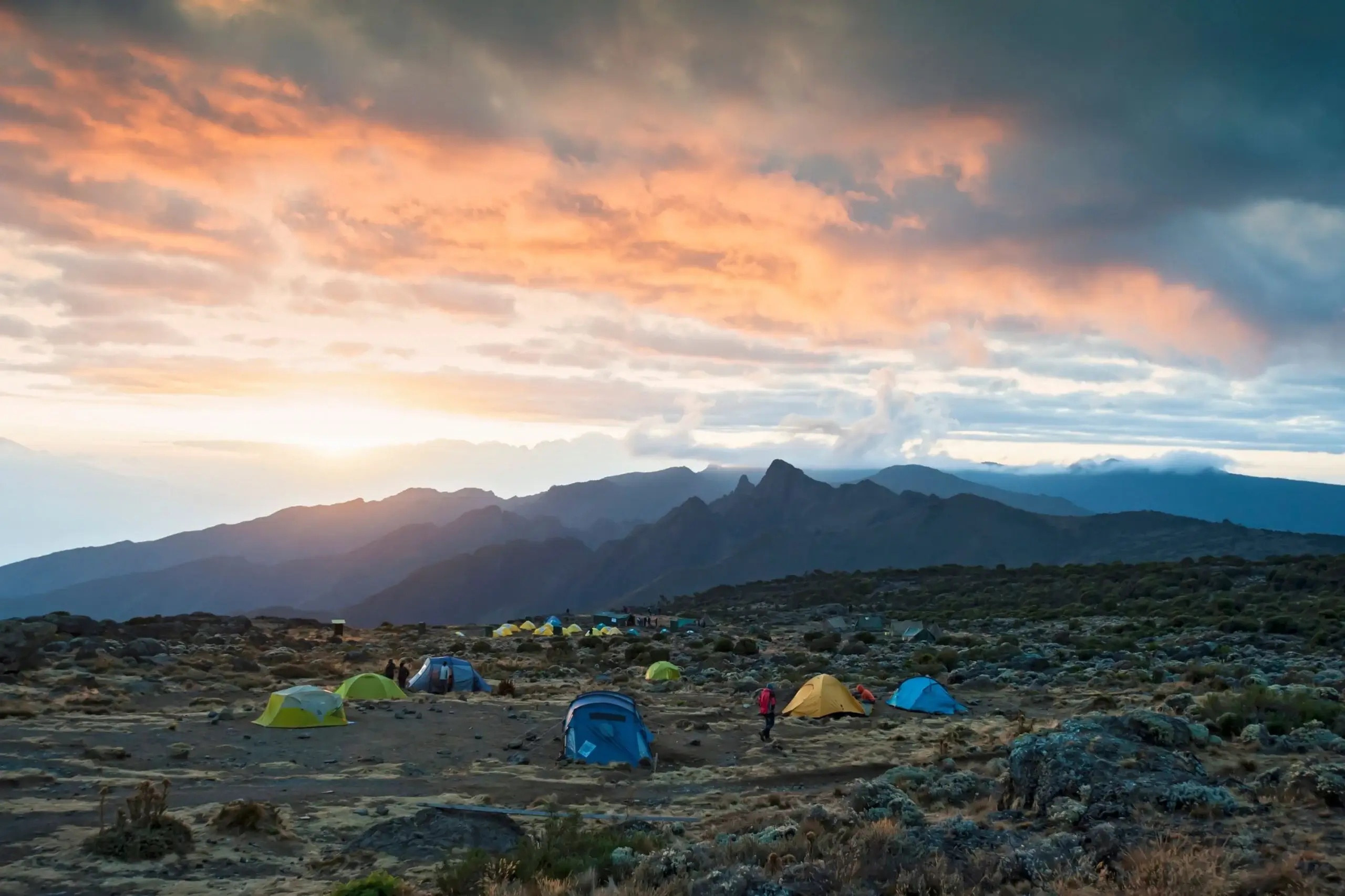 After breakfast, we continue as the trail gradually steepens and enters the giant heather moorland zone. After several streams are crossed we continue over the Shira Ridge then gently downwards to Shira 1 camp located by a stream on the Shira Plateau.